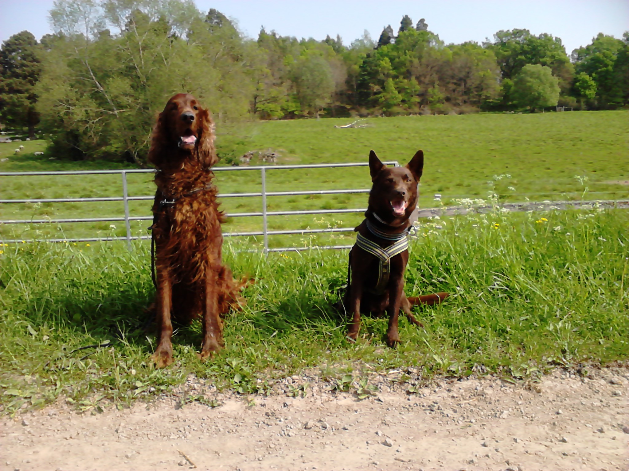 Ruskigt bra känsla i lydanden, Kiro var supertaggad och påverkades inte alls av annars väldigt svåra störningar som att husse går iväg och kommer tillbaka. Strul med knallpåken gjorde att vi inte riktigt fick till den plats med skott träningen som jag hade tänkt men ändå bra det vi fick till. Började med ett skott under lek som han noterade men bröt inte leken. Sen fick han ligga ca 40-50m från skytten, det blev längre tid än tänkt innan första skottet, om det spelade någon roll vet jag inte men han reste sig och la sig efter någon sekund på eget initiativ och låg sedan lugnt. Dock så hade jag tänkt att vi skulle ha ett skott till då det brukar gå bättre men det tänkte inte knallpåken då skottet fastnade 😦 Det kändes iaf bra eftersom han var helt med på uppgiften men impulskontrollen finns inte riktigt än. Lekte gärna efter plastliggningen och var inte fixerad vid att springa till husse (skytten).