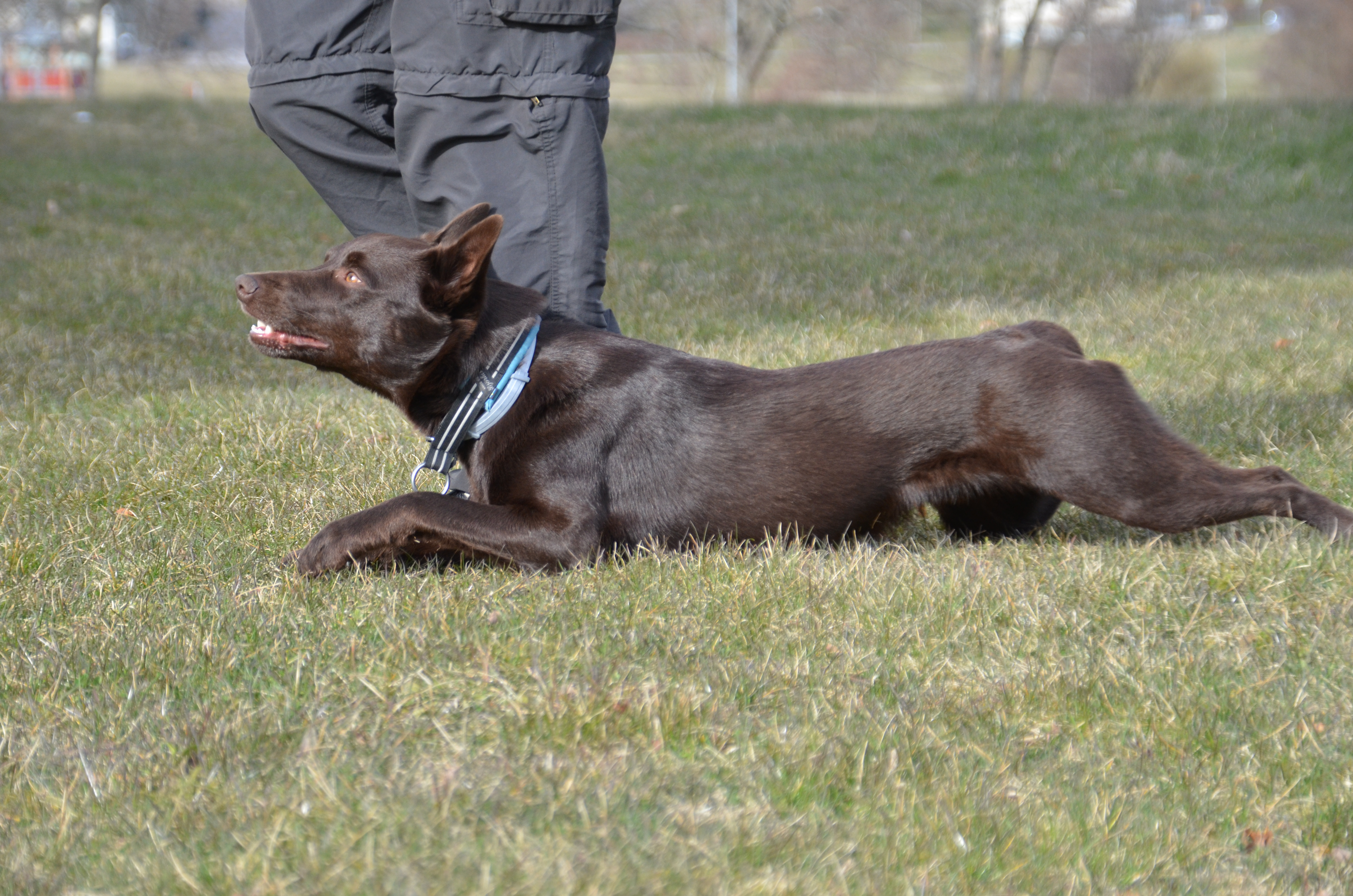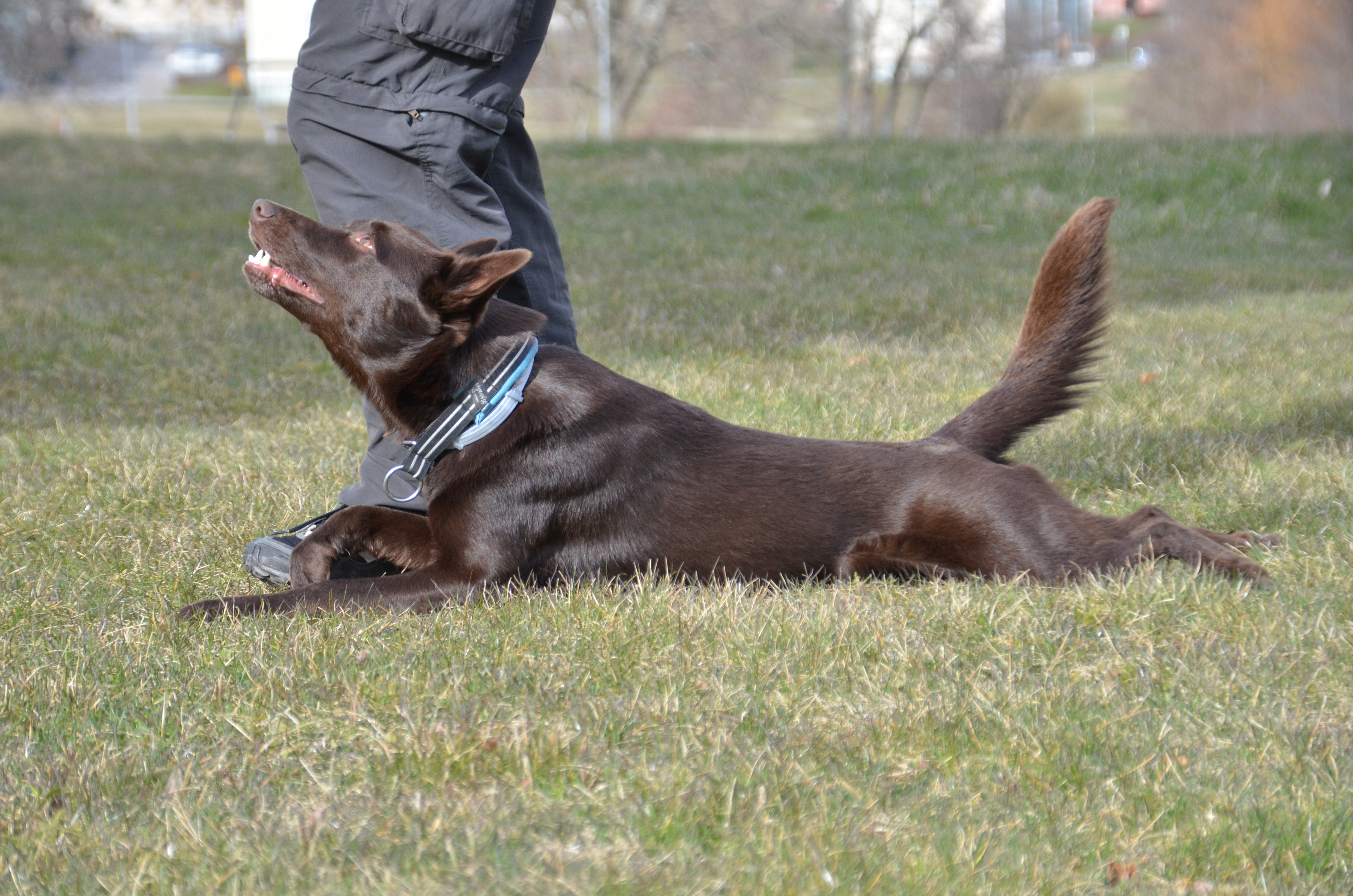 Jag försökte strukturera upp träningen och bestämde redan innan att vi skulle träna platsliggning, kryp, en kedja, framförgående och skiften i fjärrdirigeringen. Men det tog mindre än 30 minuter så det blev även lite fotgående, apportering och inkallning med ställande.