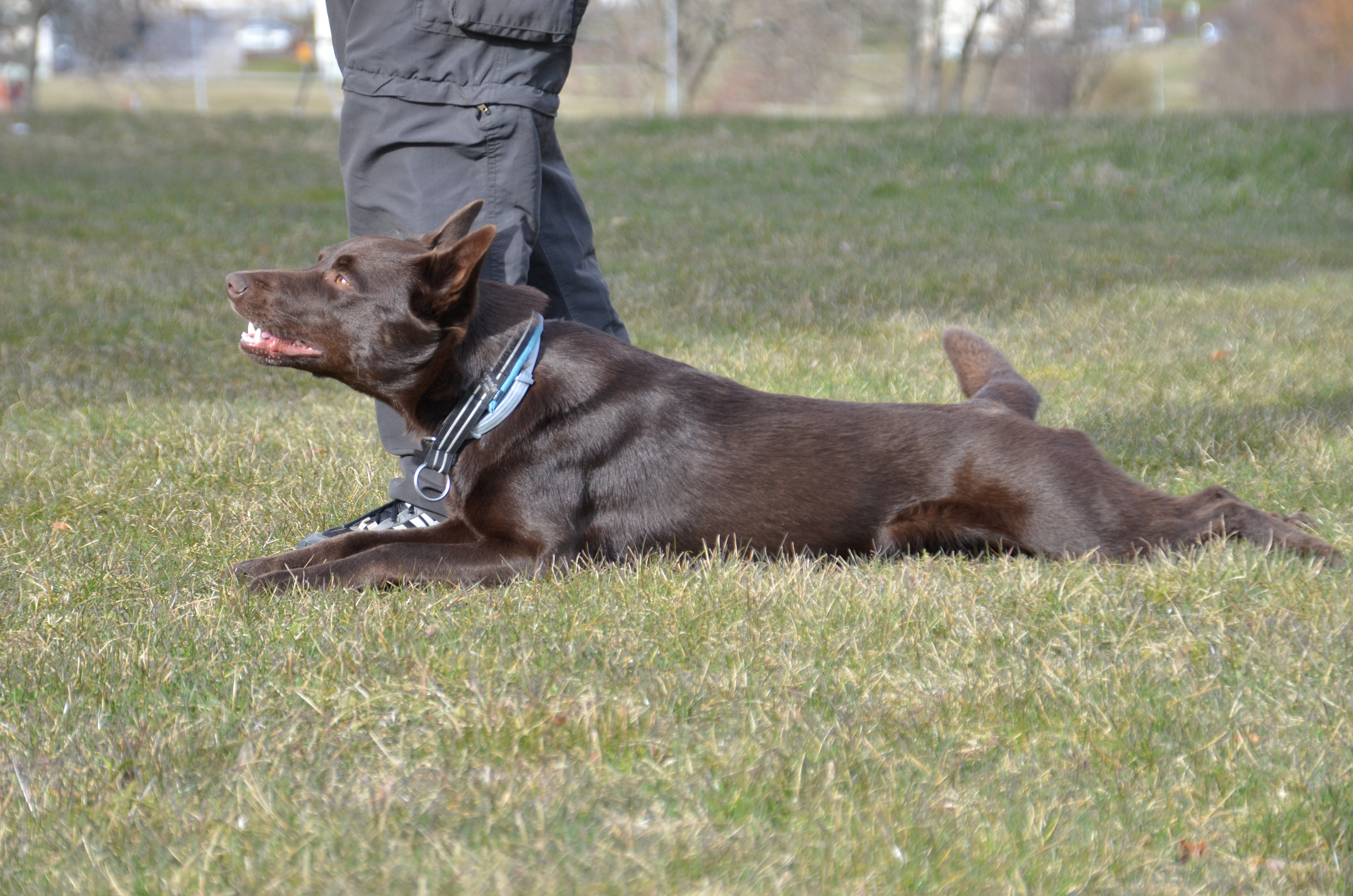 - Platsliggning 5 minuter 30 meter – Ok men lägger sig snett och sätter sig inte på första kommandot. Ligger iaf väldigt stadigt trots en hel del störning.