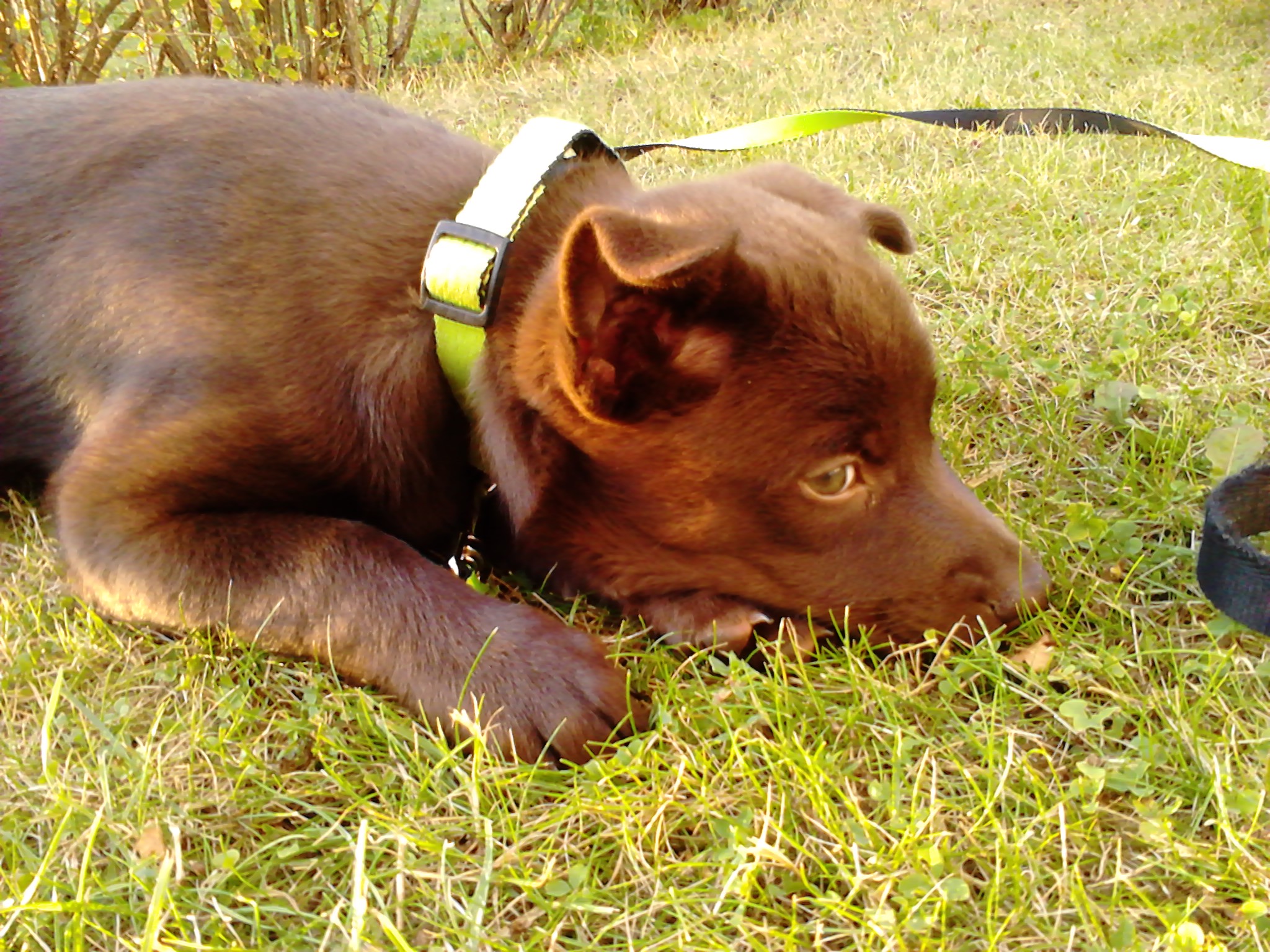 Kiro har väl inte riktigt förlikat sig med den nya familjemedlemmen ännu. Igår var han först väldigt intresserad och lite för på. De lekte dock lite på gräsmattan så förhoppningsvis blir det mer lek framöver. Idag har Kiro varit lugn men ser mest ut som han undrar när den där saken ska åka hem igen. Är Helix för påträngande går han iväg om han inte blir trängd då säger han ifrån, eller om Helix försöker ta hans mat.