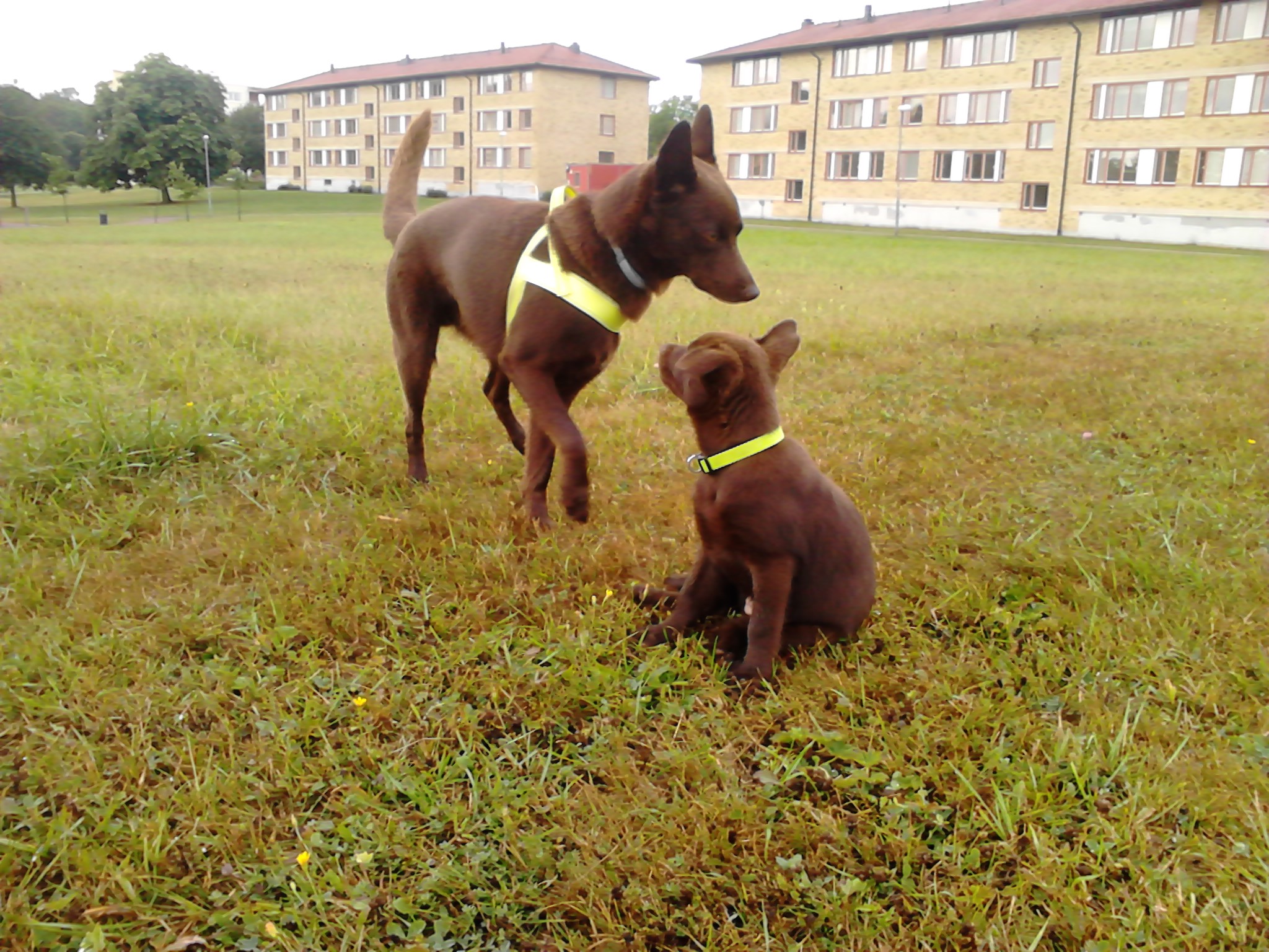 Första hela dagen med Helix har varit okomplicerad. Äta, busa, kissa, bajsa och sova massor vad Helix har pysslat med. Vi har varit ute på korta utflykter precis i närheten och spenderat en del tid på gräsmattan utanför. Kiro har skött sig jättebra men är inte så imponerad av Helix, tycker att han kan hålla sig på lite avstånd inne. Ute vill de gärna leka med varandra men inte på samma sätt. Kiro är inte så mycket för närgången lek och Helix hinner inte med Kiro när han springer och springer Kiro efter Helix så tycker Helix att det är lite läskigt. Så de skäller mest på varandra, Kiro skäller ute och Helix inne.