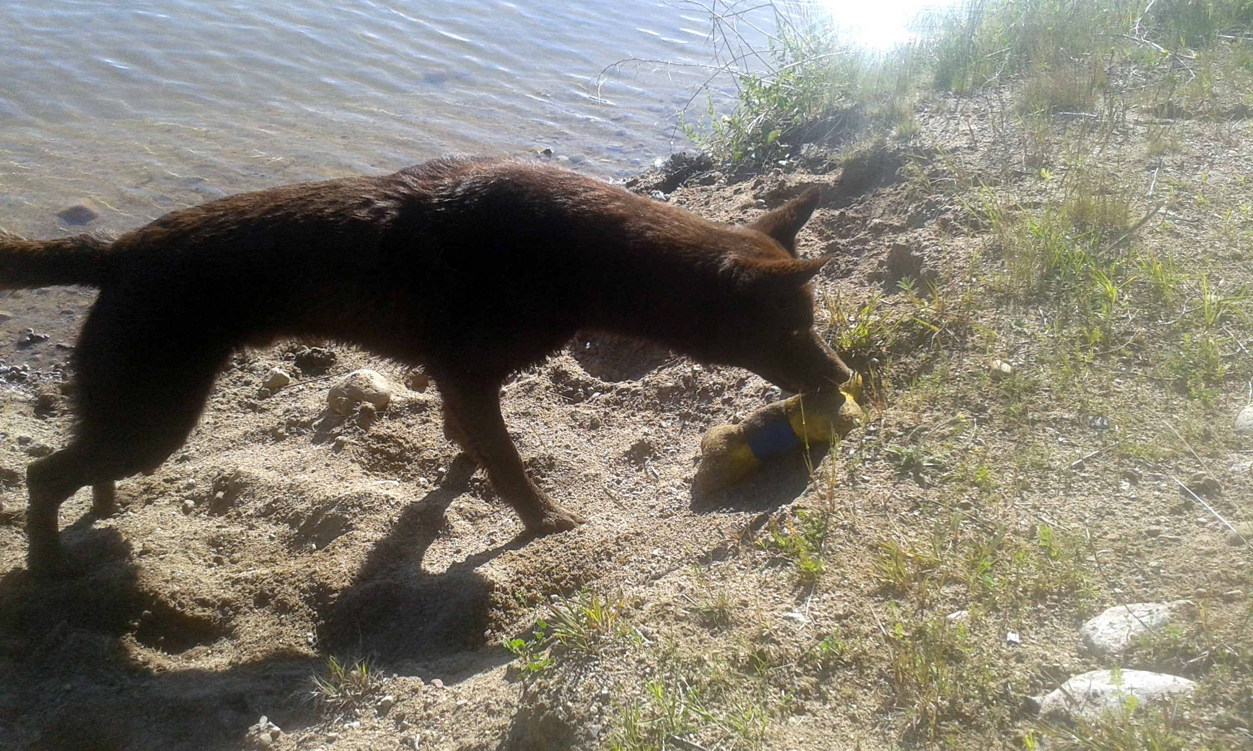 Igår tog jag kompledigt på förmiddagen då hundvakten var upptagen. Planen var att lämna två trötta hundar hemma på em och det tror jag att jag lyckades med. Första la jag två spår och sen medan de låg körde vi uppletande. Båda hundarna var duktiga men det var svårt underlag grus/lera/högt gräs. Helix kom in med ett mjukt och lekvänligt föremål nästan helt utan att leka med det först. Kiro jobbade jättefint men hittade inte sista föremålen men han gav aldrig upp utan fortsatte tills jag bröt och belönade. Spåren gick ok. Helix spår gick enbart på kortklippt gräs, några hundra meter, och det var väldigt blåsigt han kämpade på bra men jag fick hjälpa honom på några ställen. Tre av fyra pinnar markerade om än slarvigt.