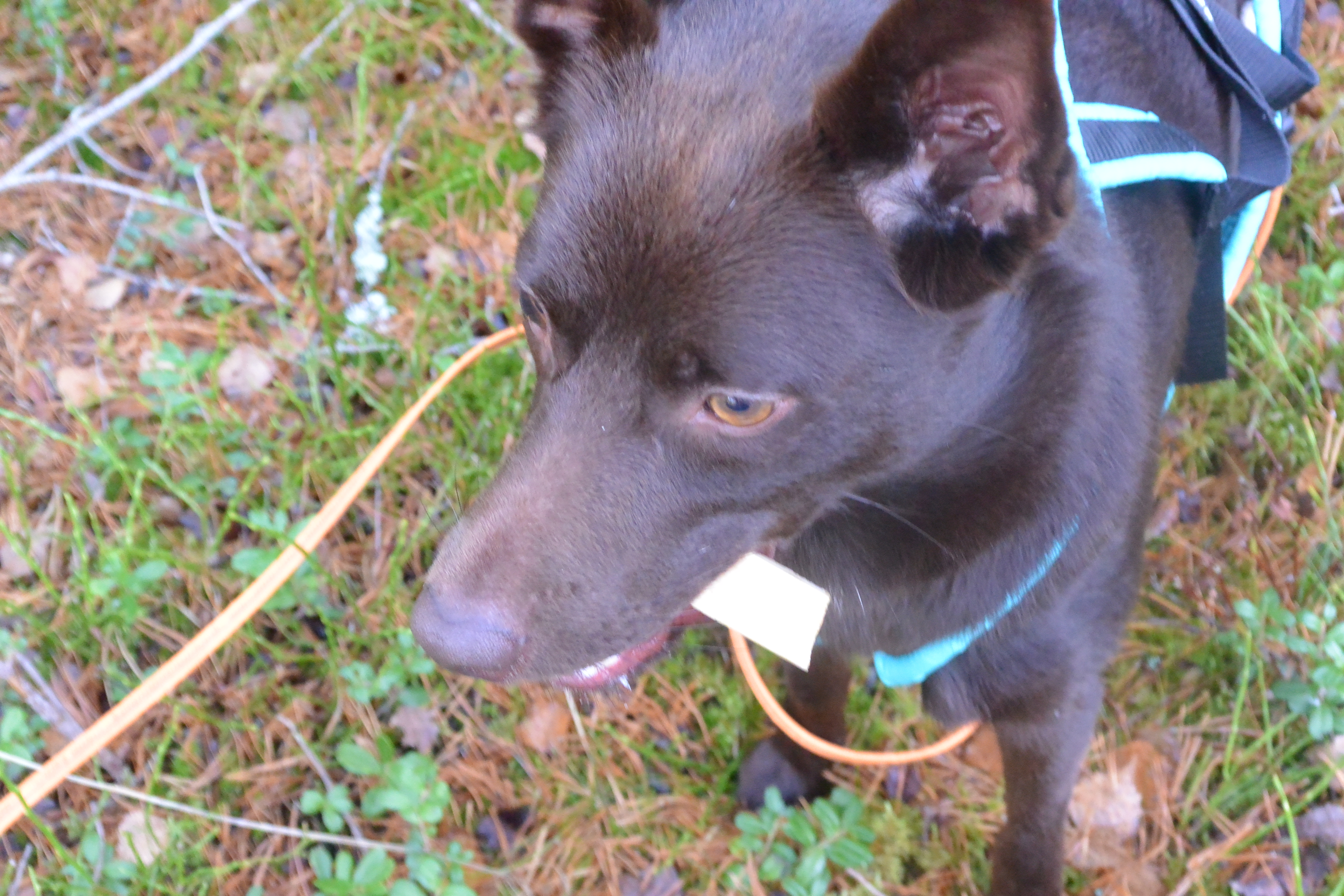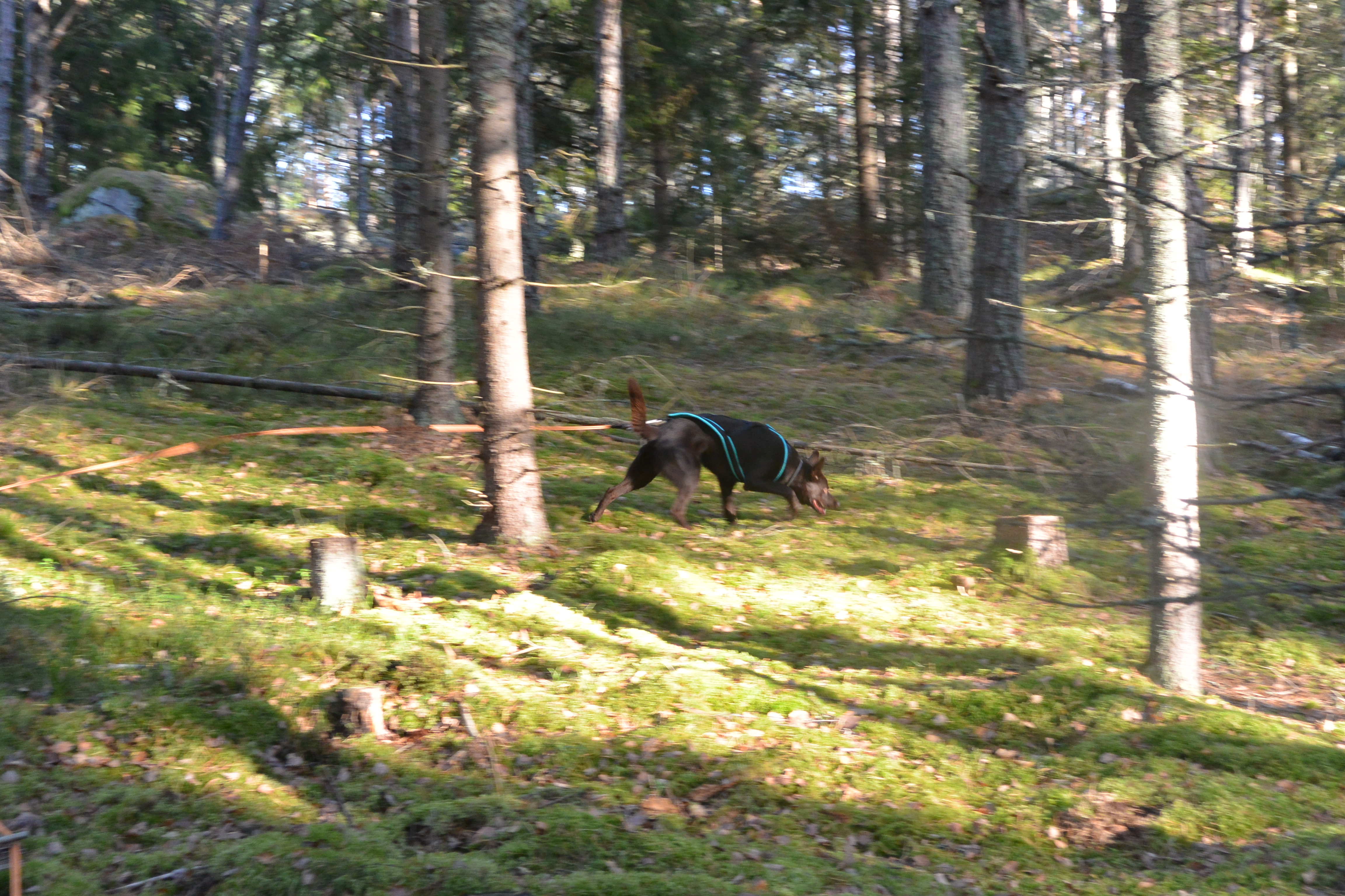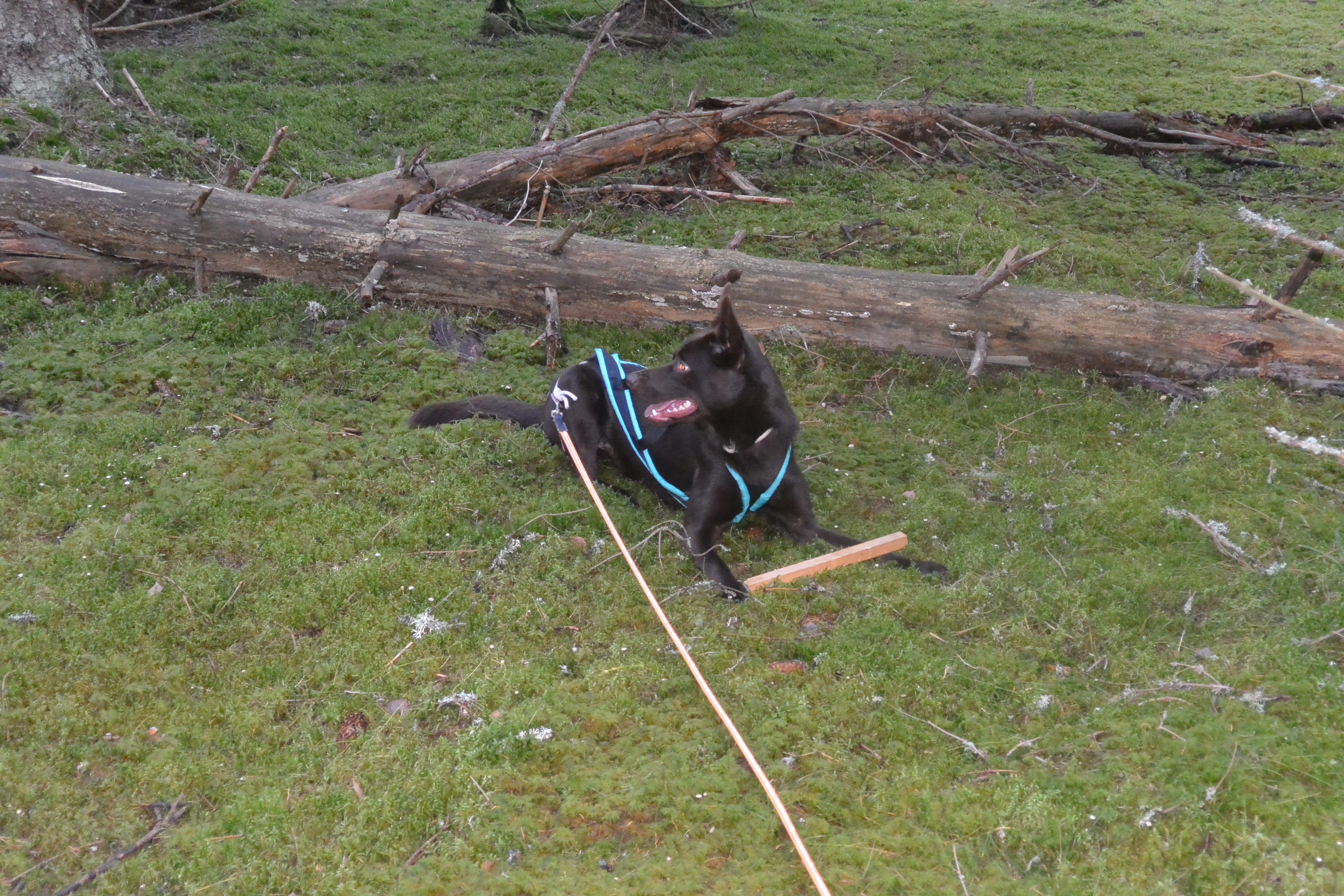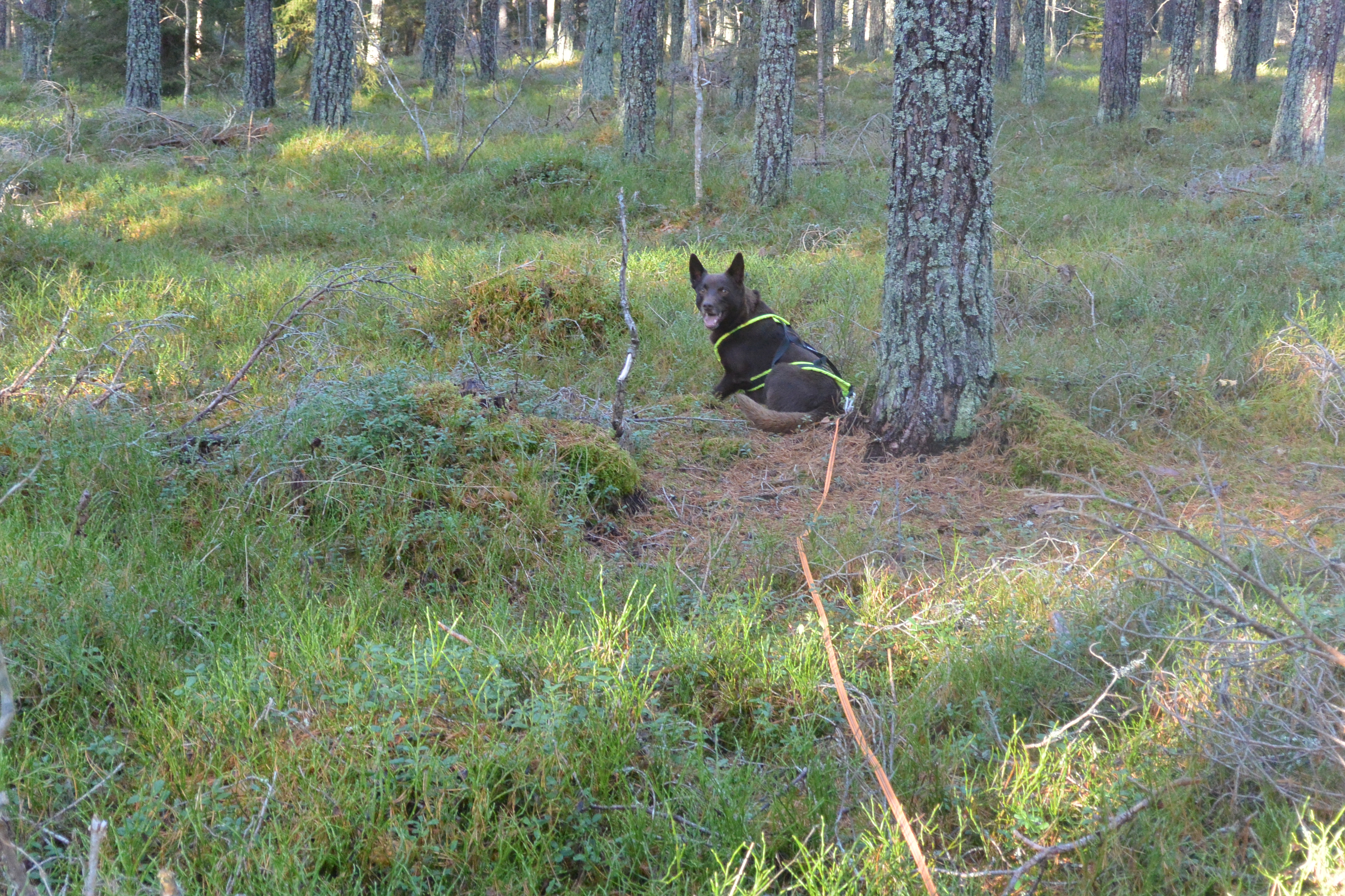 Kiro fick spår över fotbollsplanerna, det blev mycket störning, Två personer med hund han korsat och gåtti spåret samt flytta på en pinne. Han löste det bra men bytte spår på ett ställe. Han missade pinne som troligtvis var flyttad på. Helix spår blev 690 meter i skog. Det gick bra men han var lite lättstörd och stannade och spanade ett par gånger. På ett ställe missade han en vinkel och verkade hitta ett annat spår så då gick jag ta tillbaka honom till rätt spår. Alla pinnar (4+slut) hittade och markerade 🙂