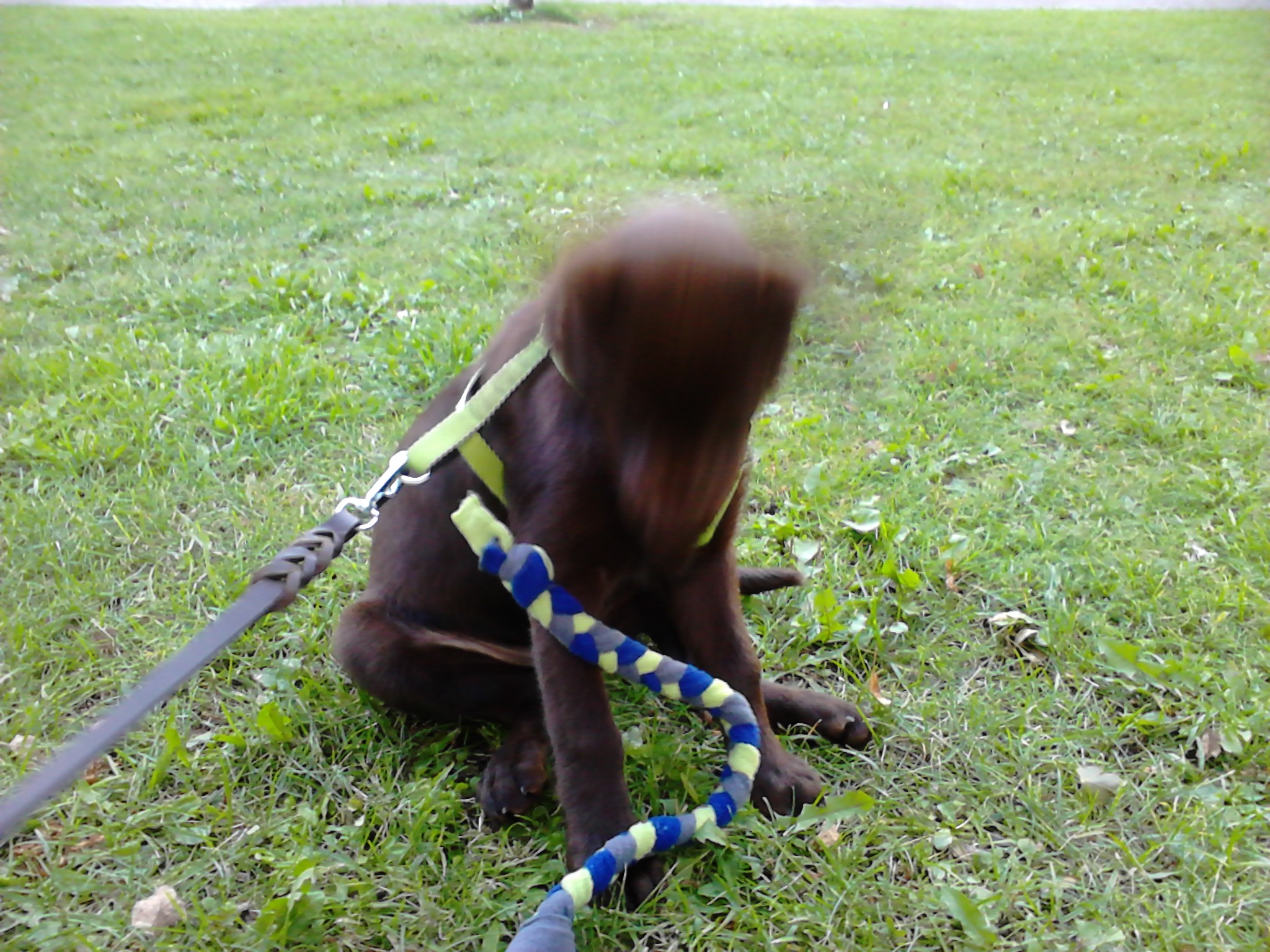 Helix fick mest träna på att bara vara med. Han var rätt stökig i början men lugnade sig snart och fick belöning för att vara lugn. Sen somnade han och fick ligga i bilen och sova, inga problem att ligga där själv. I slutet lekte vi lite på planen.