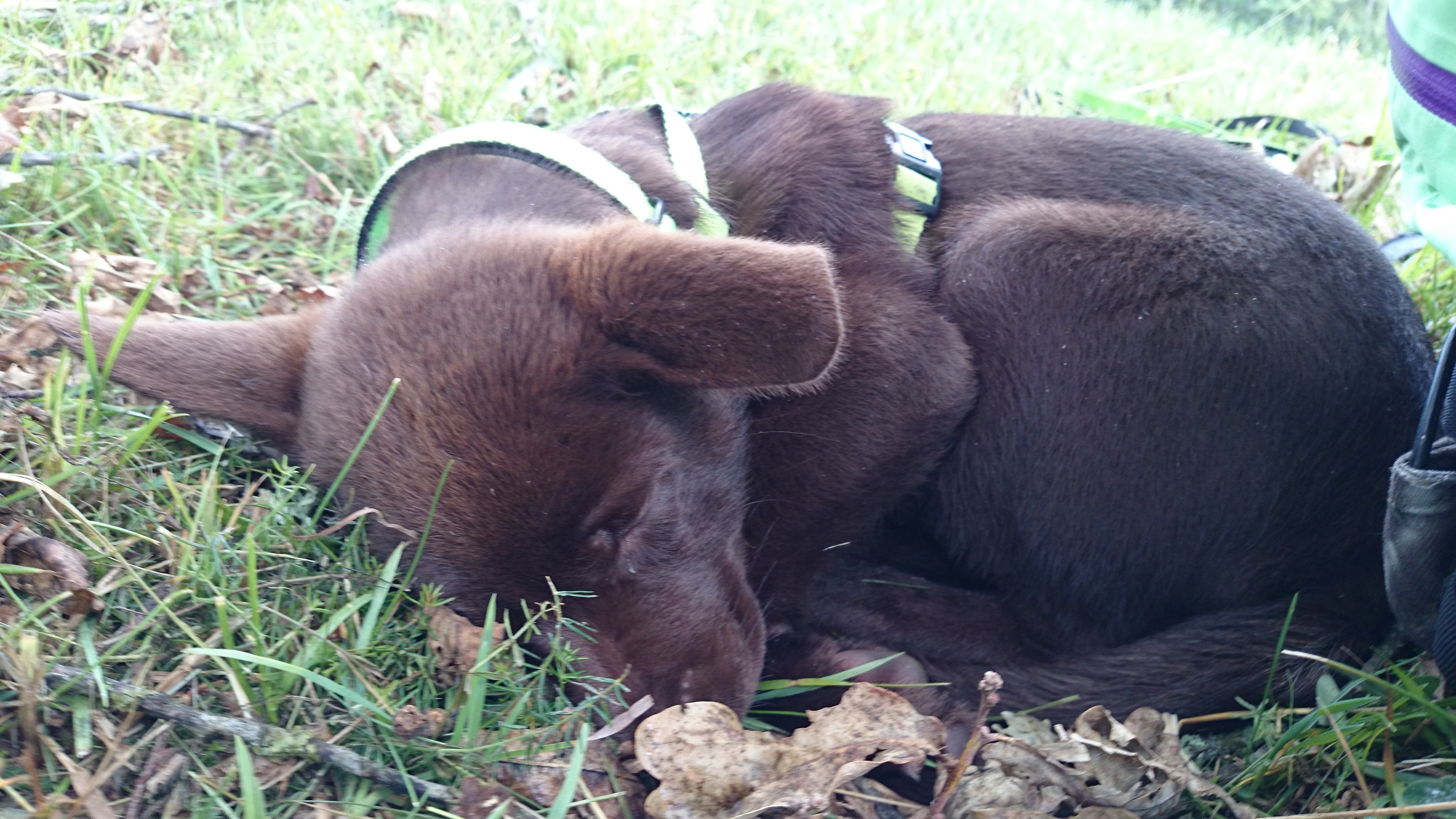 Nu har vi två väldigt trötta hundar här hemma även om den ena behövde övertalas om att han faktiskt var trött.